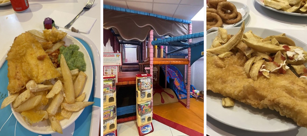 My son loved it here so much he insisted we go back, so we visited twice in one weekend. The soft play was great, such a good idea, but the young ladies who were working on Friday lunchtime where honestly the nicest and friendliest staff I’ve ever encountered anywhere. He wants to come back next year. Food was good, arrived quickly and the toilets were fine. Photo is the kids half eaten fish and chips.
